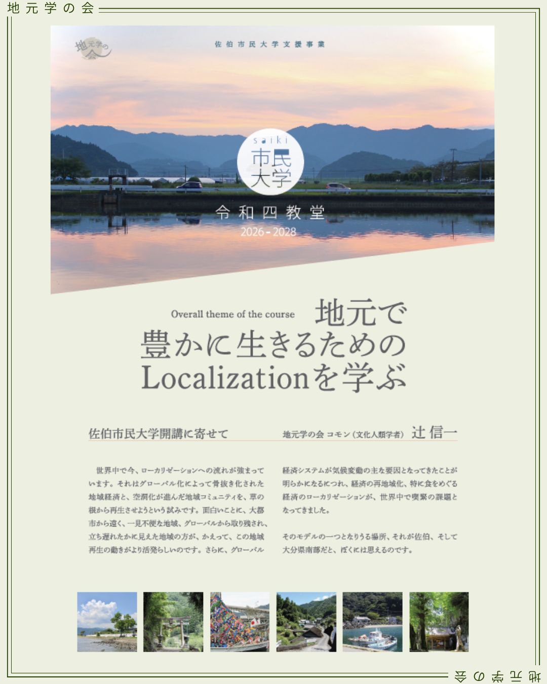 聞きなれないLocalizationという言葉ですが、この言葉は未来への期待や佐伯のような地方都市に明るい希望を照らす視点を与えてくれる一筋の学問だと私たち地元学の会は考えています。よい未来を掴むために私達と共に学び、行動につなげていくため運動の参加者になってください。